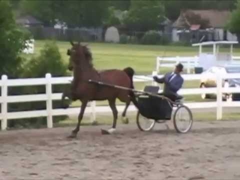 Fine harness: Also called formal driving. Horses are hitched to a light four-wheeled cart and shown in a manner that emphasizes flashy action and dramatic performance. Refined pony breeds and certain light saddle horse breeds noted for their action are most often seen in fine harness. Most fine harness competition requires horses to perform a bit of a walk, and two types of a high-action "park" trot, a slow trot with more controlled but elegant action, and a faster, flashier trot where the horse exhibits the most animation possible, often announced by the command "show your horses" (or "show your ponies" in the case of pony shows).